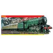 The famous London to Scotland train is presented here in a top-of-the-range Hornby train set with LNER 4-6-2 locomotive and four classic teak coaches, depicting the Flying Scotsman as it ...